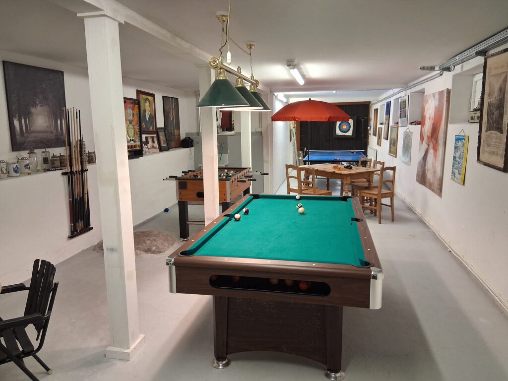 Im Erdgeschoss steht allen Gästen ein Spieleraum zur gemeinschaftlichen Nutzung zur Verfügung und ist mit Billardtisch, Tischtennisplatte und Kicker ausgestattet – perfekt für gemeinsame Stunden bei jedem Wetter.