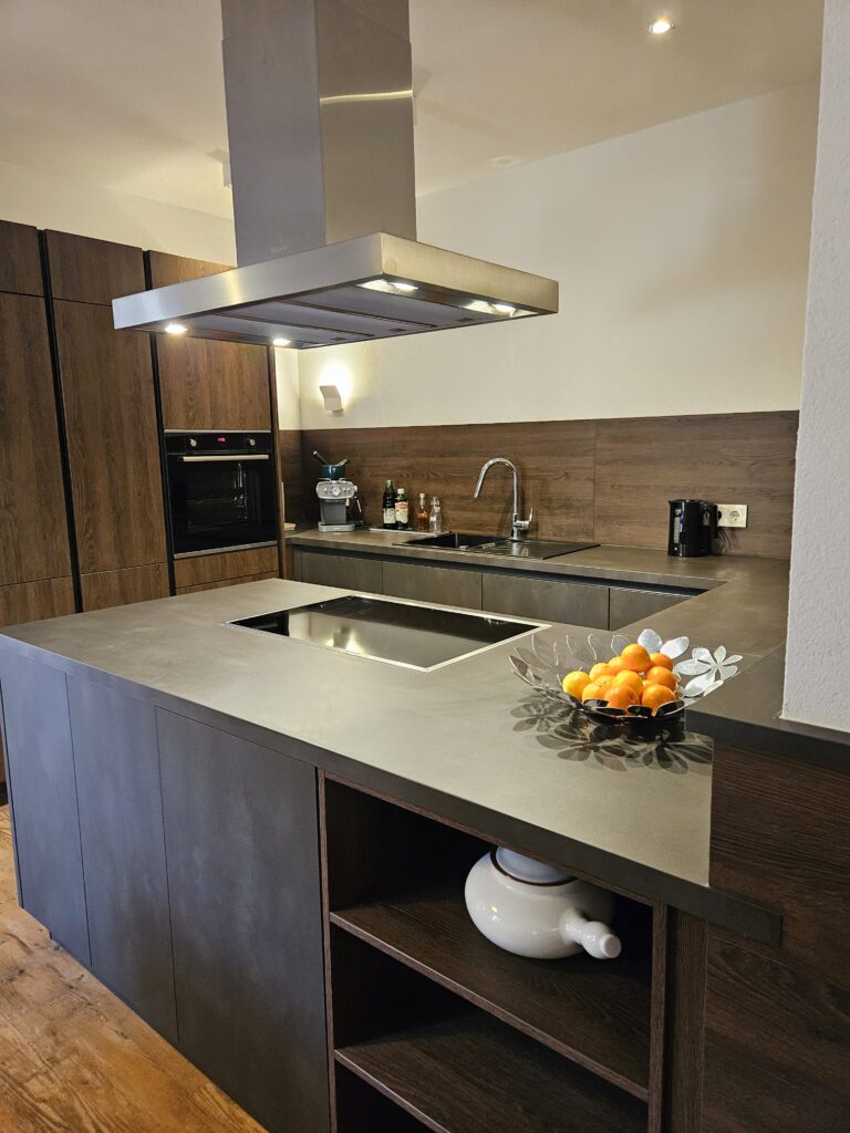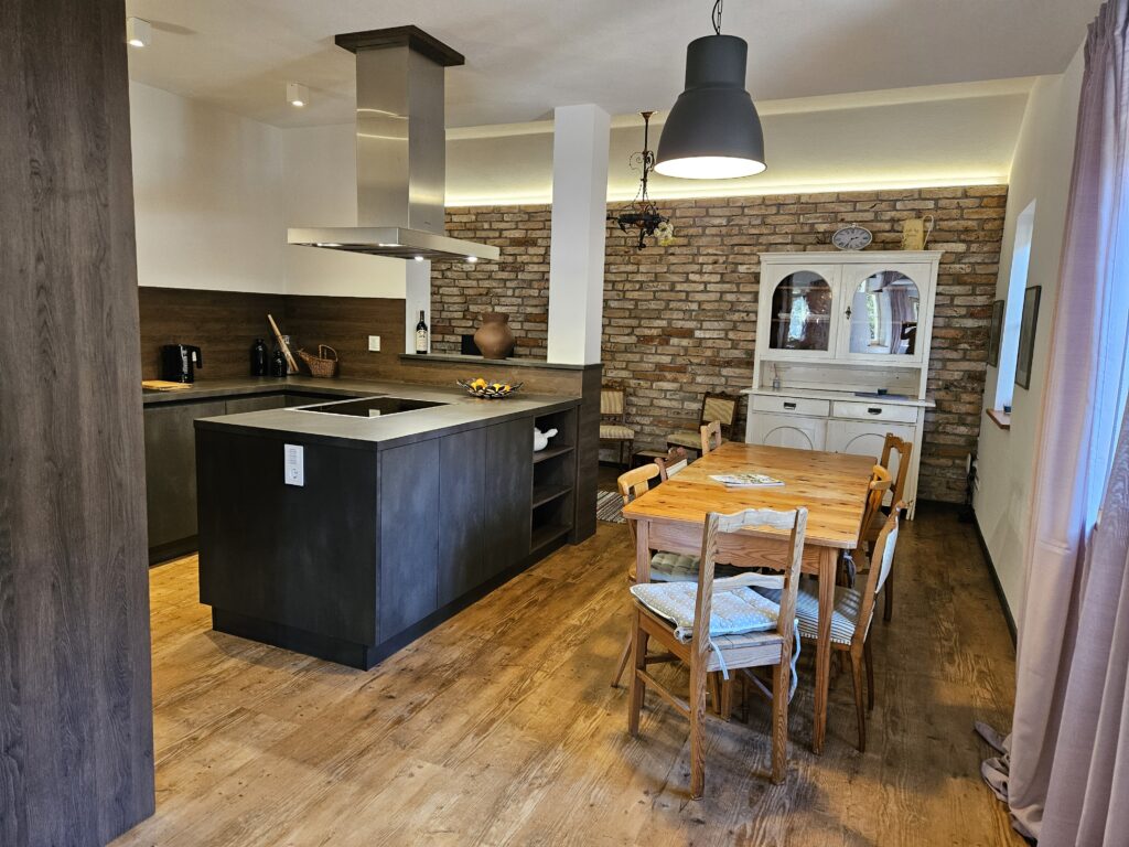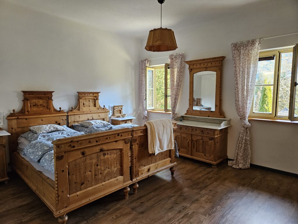 Die 114 m² große Premium-Ferienwohnung bietet Platz für bis zu 4 Personen und verbindet alpine Gemütlichkeit mit modernem Komfort. Hochwertige Materialien, warme Farben und liebevoll restaurierte Möbel schaffen eine Atmosphäre, in der man sich sofort zuhause fühlt. Die klare Raumaufteilung sorgt für Offenheit und gleichzeitig für Rückzug.